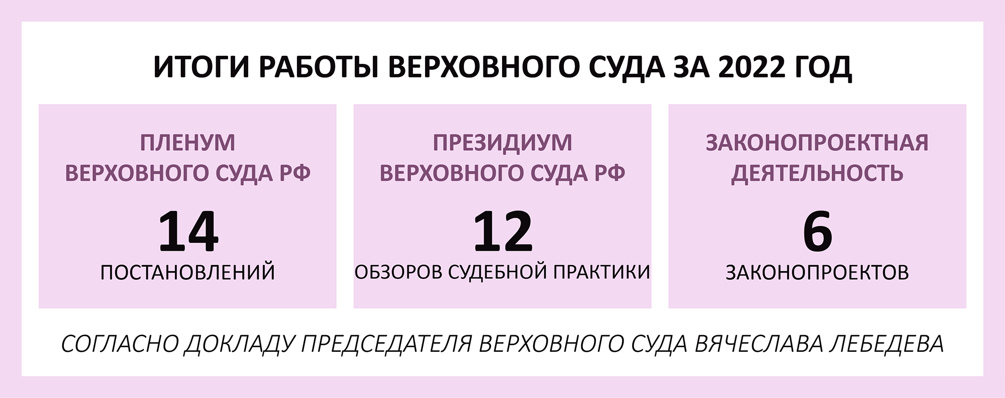Деятельность ВС в цифрахПосле приветственного слова президента выступил Вячеслав Лебедев , председатель Верховного суда . Сначала он остановился на статистике работы ВС по обеспечению единообразия судебной практики.