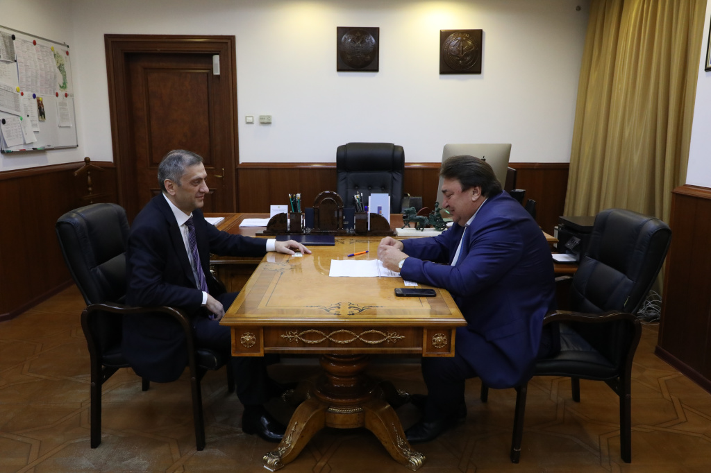 Председатель Правительства Ингушетии Владимир Сластенин встретился с начальником Регионального управления специальной связи по СКФО – Управления специальной связи по Краснодарскому краю Русланом Гезгиевым.