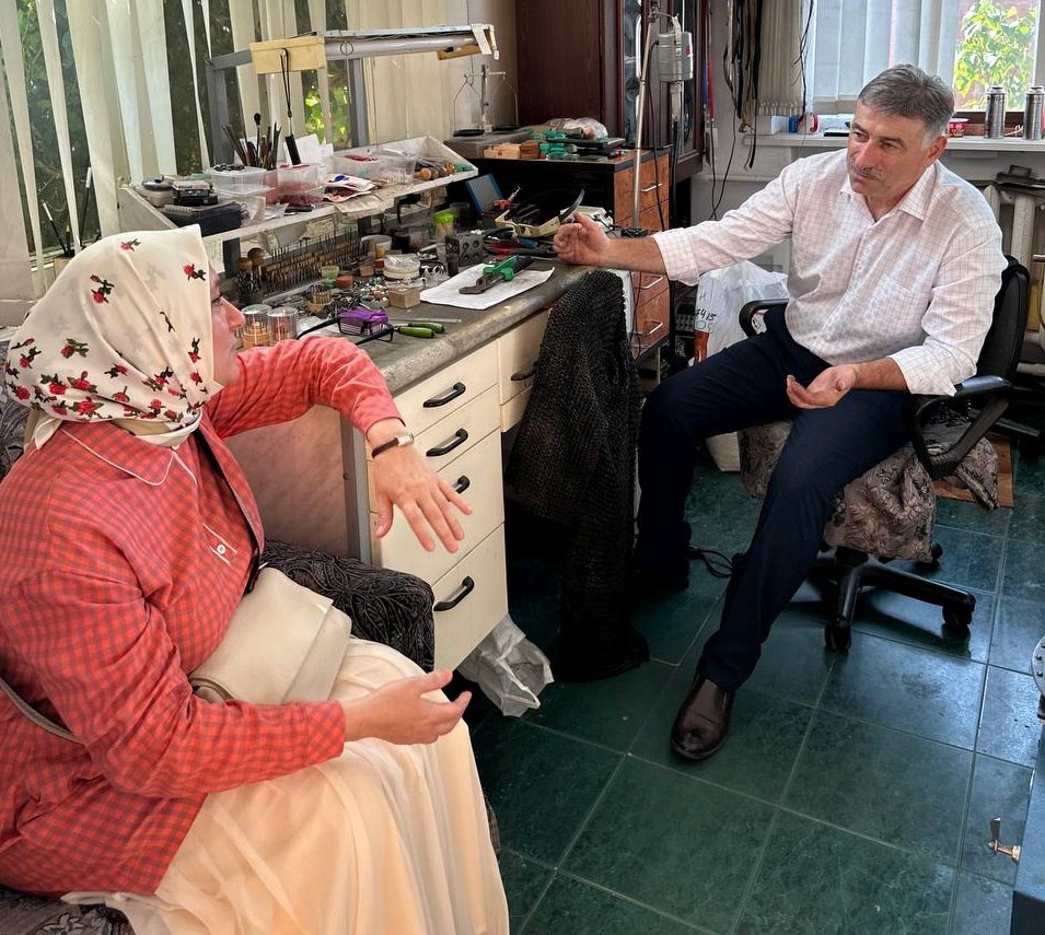 На днях сотрудники музея ИЗО Ингушетии – главный хранитель Мадина Хамхоева и искусствовед Багаудин Коригов посетили мастерскую Бекхана Дахкильгова для изучения будущих музейных экспонатов.