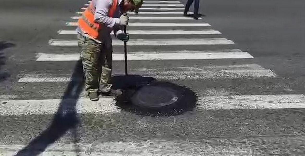 Сегодня рабочие бригады занимаются установкой крышек канализационных люков, укрепляя их вдоль всего основания настолько, насколько возможно.