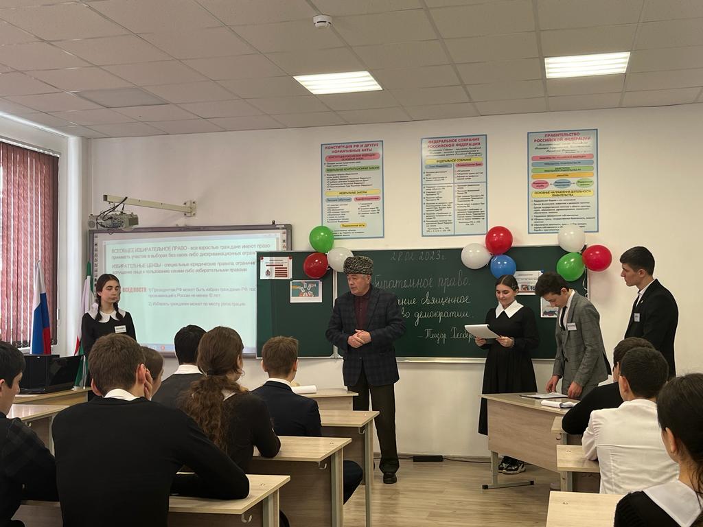 Встреча состоялась с учащимися 10-х классов. Почетными гостями мероприятия стали заместитель председателя Избиркома Ингушетии Беслан Котиев, председатель горсовета Назрани Юсуп Богатырев,
