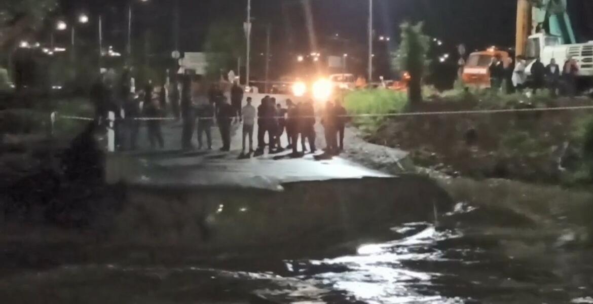 В городе Карабулаке, из-за поднявшегося уровня воды в реке Сунжа в результате продолжительных ливневых дождей, снесло временный объездной мост по улице Промысловой.