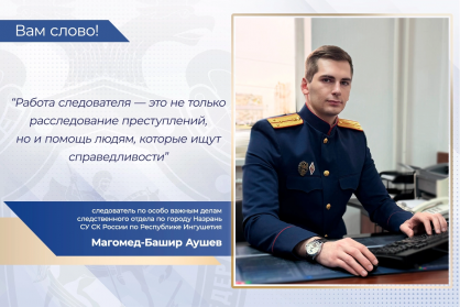 В проекте «Вам слово!» принимает участие следователь по особо важным делам следственного отдела по городу Назрань СУ СК России по Республике Ингушетия Магомед-Башир Аушев