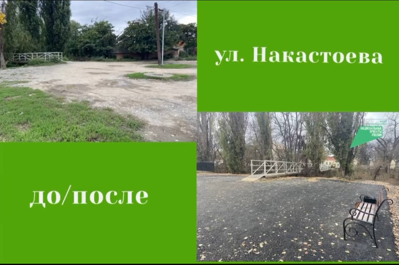 Одним из благоустроенных участков в 2021г. стала территория перед коррекционной школой по улице Накастоева, на которой проведены работы по асфальтированию, установкой опор освещения, скамеек и урн.